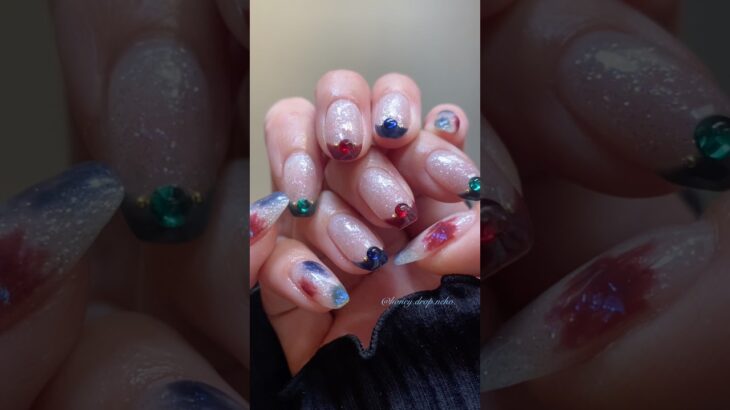 推し活ネイルです🤍 ベースはLayerGelのブルーのオーロラが入ったMistに 3色のメンバーカラーでフレンチとニュアンスにしてみました。 ストーンはスワロフスキーを使ってますが 引 […]